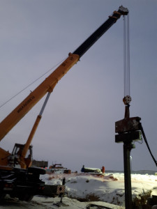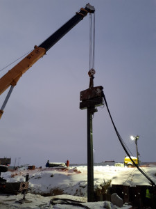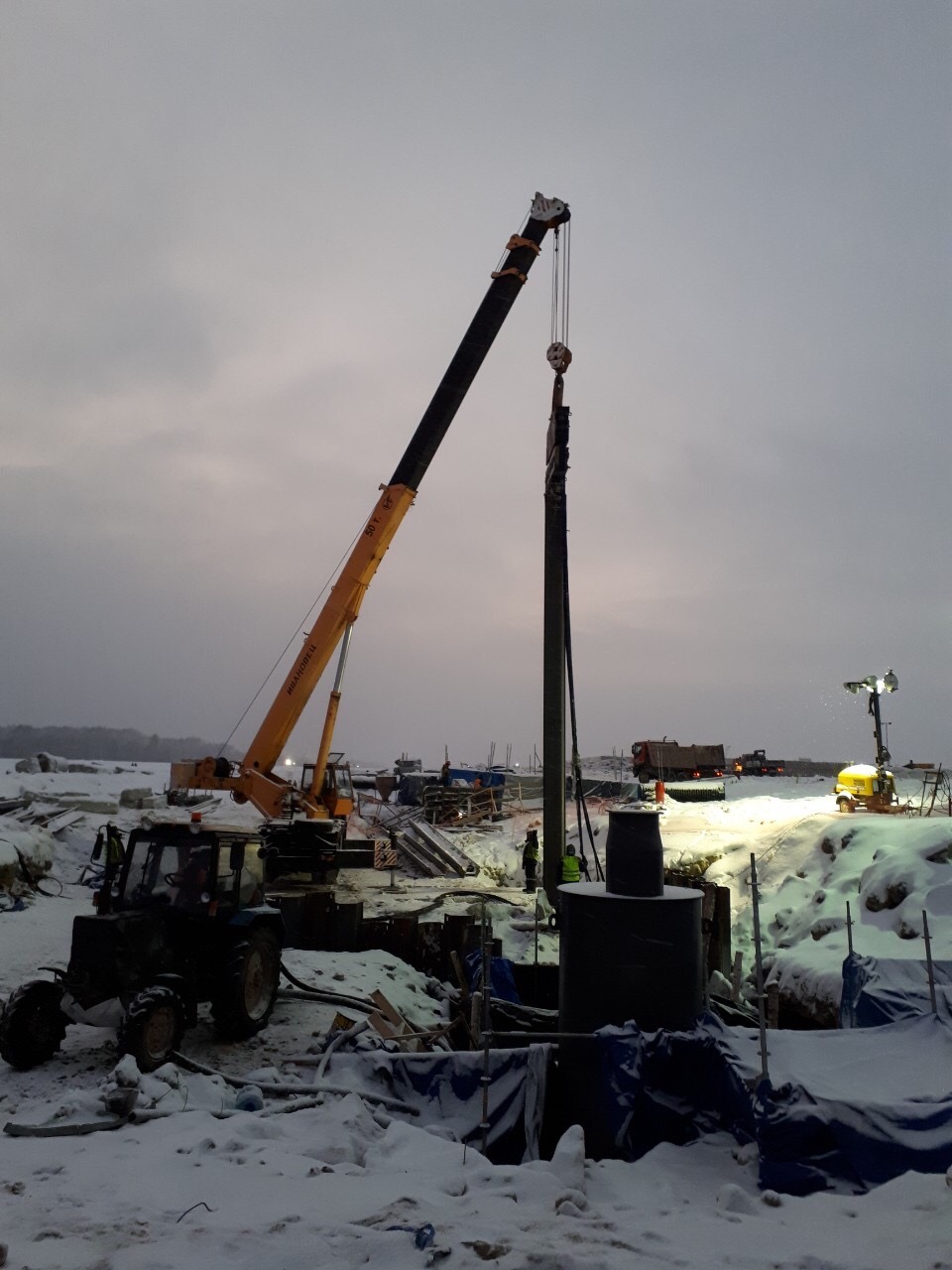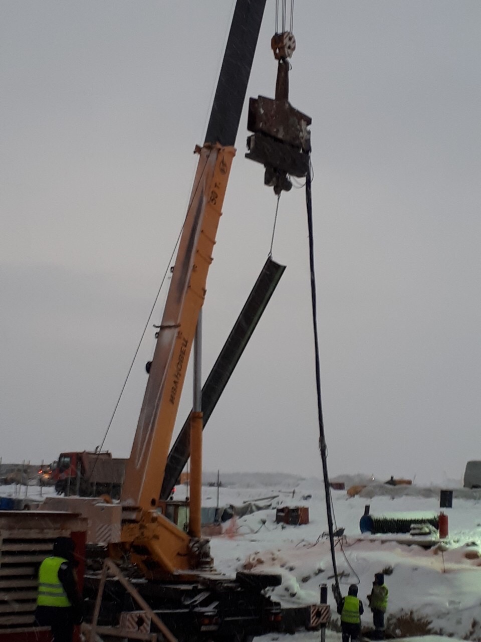 Строительство нового аэропорта. Продолжается монтаж шпунтовых стен котлованов под КНС.
